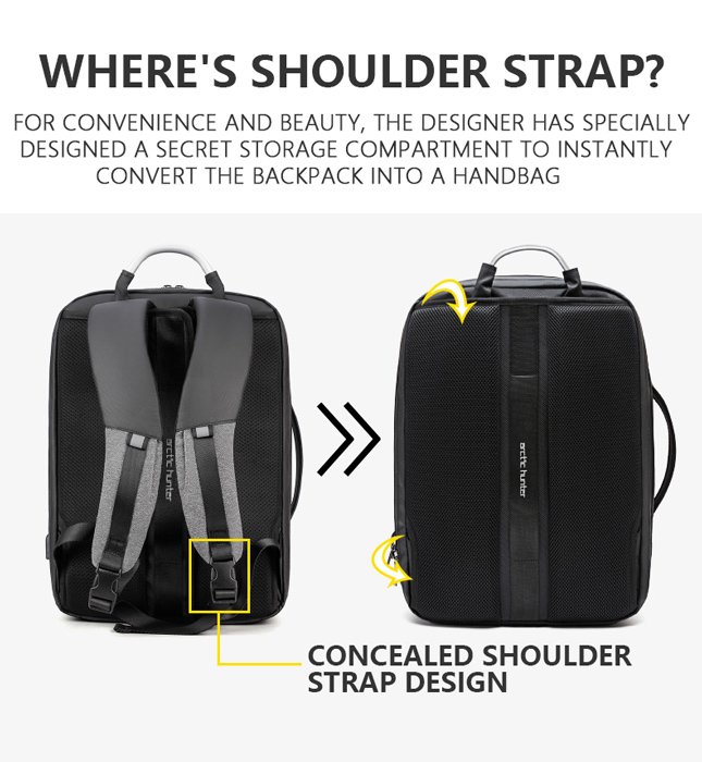 -δυνατότητα απόκρυψης του ιμάντα ώμου για μετατροπή σε τσάντα χειρός