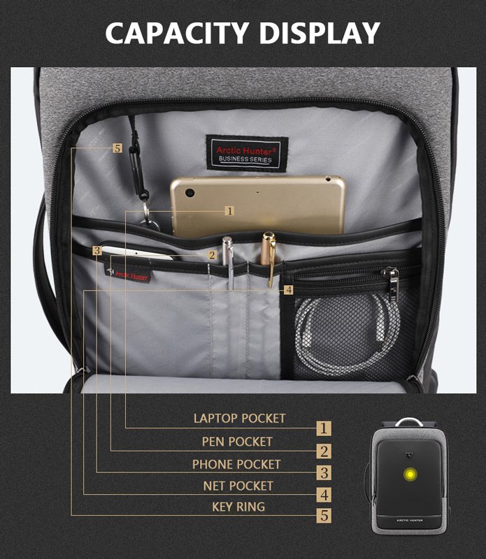 -ενσωματωμένη θύρα USB για φόρτιση συσκευών, διατηρώντας το power bank στη τσάντα