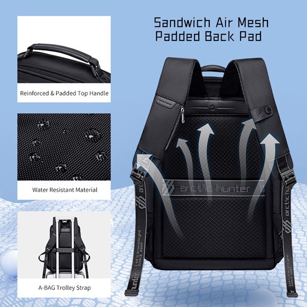 ARCTIC HUNTER τσάντα πλάτης B00492 με θήκη laptop 15.6", 22L, μαύρη