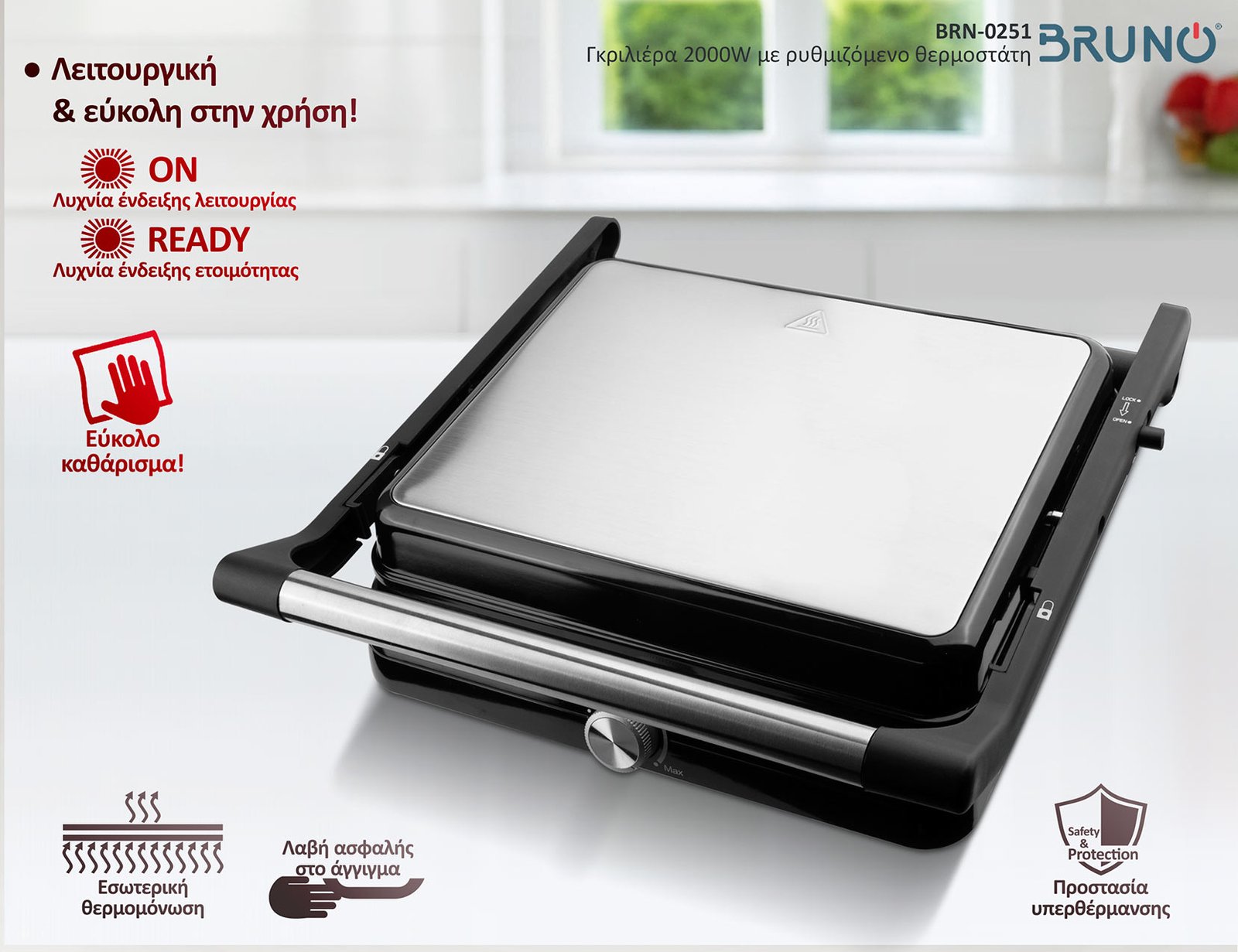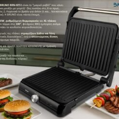 BRUNO γκριλιέρα BRN-0251, 2000W, με ρυθμιζόμενο θερμοστάτη, inox-μαύρη