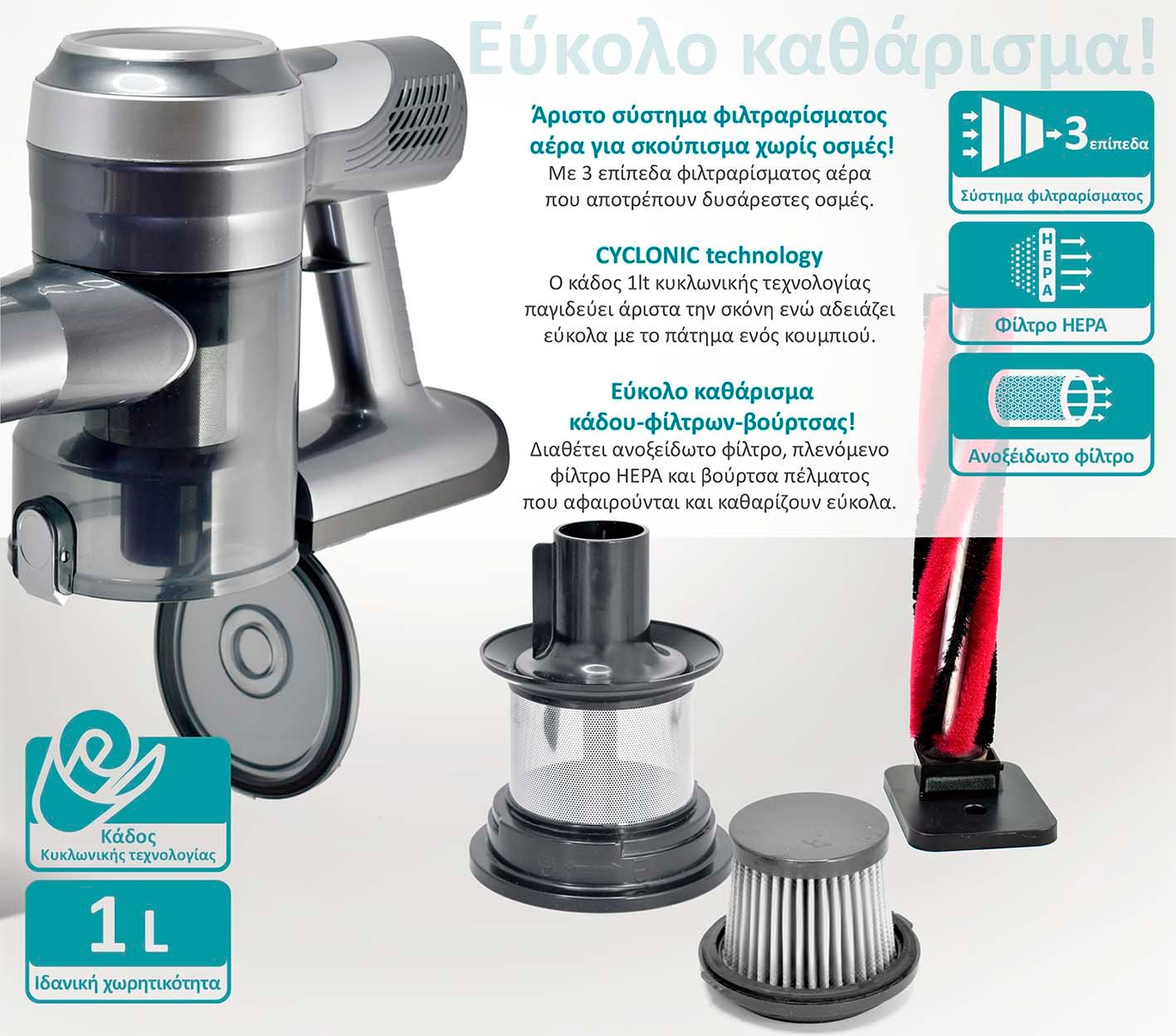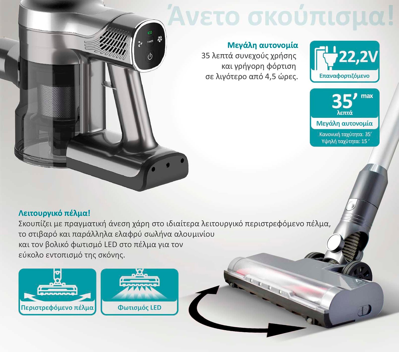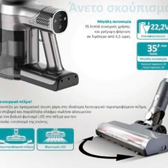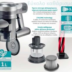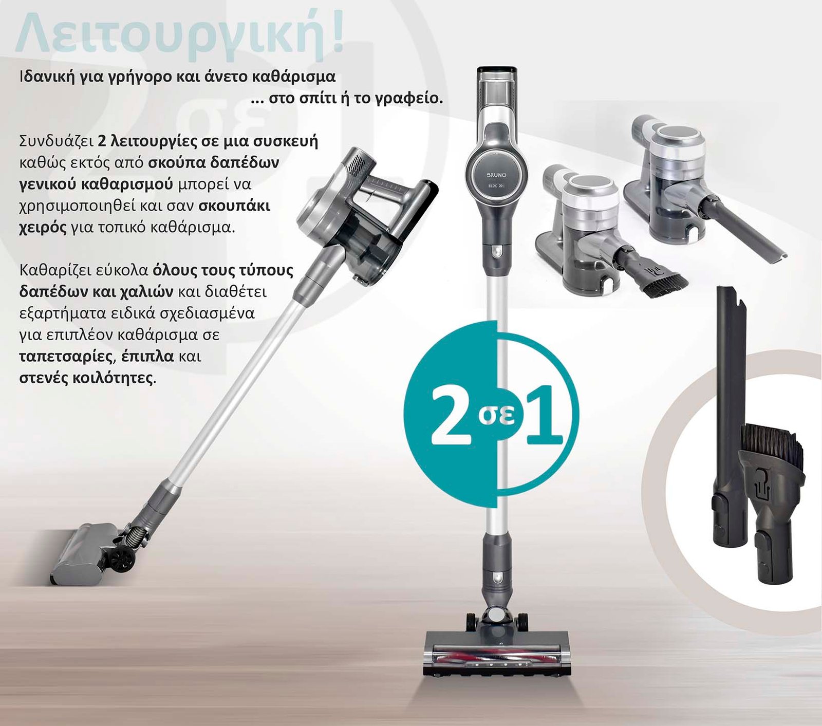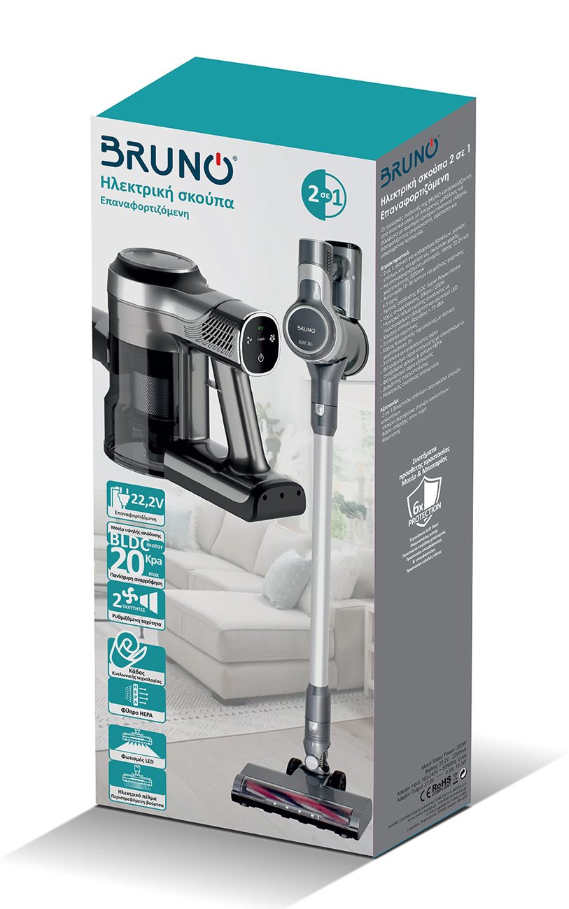 BRUNO επαναφορτιζόμενη ηλεκτρική σκούπα 2 σε 1 BRN-0160, 200W, ασημί