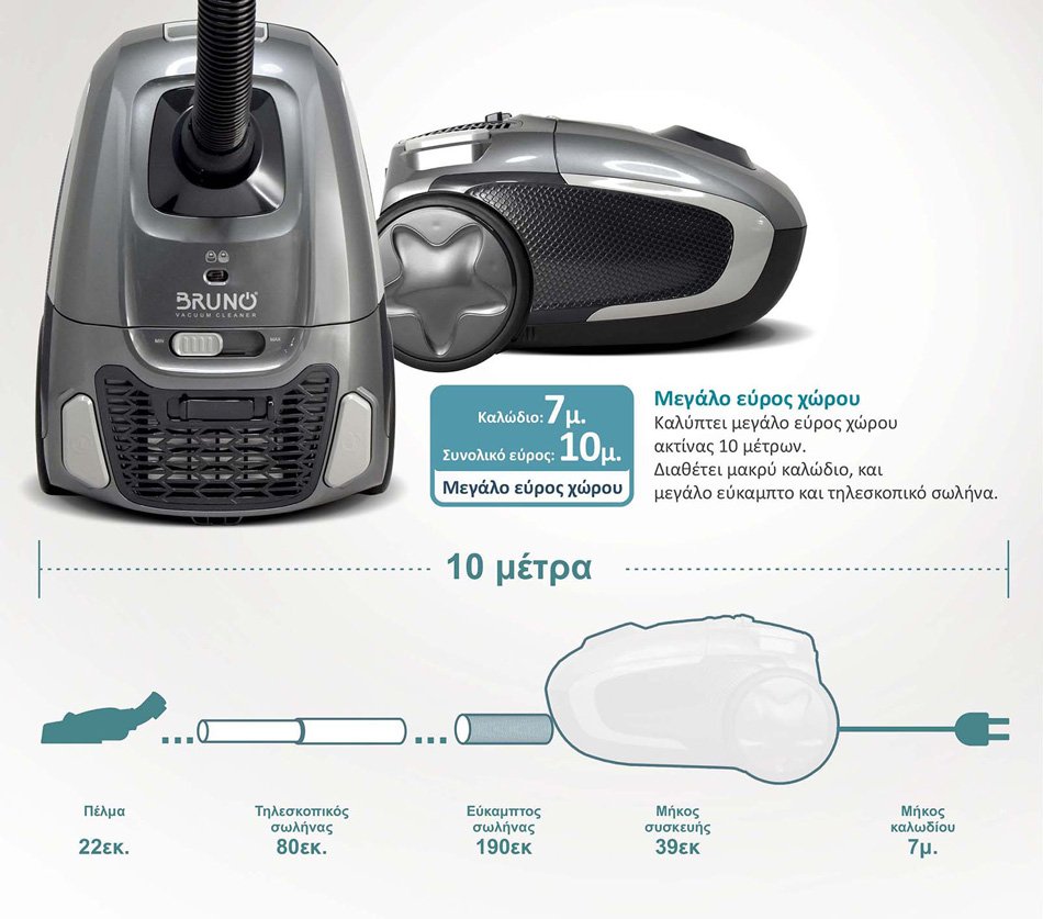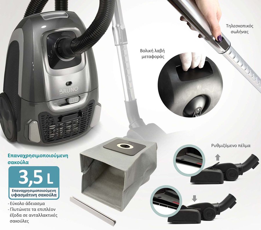 Η ηλεκτρική σκούπα BRN-0136 της Bruno, έχει όλα όσα χρειάζεστε για την καθαριότητα του σπιτιού σας!