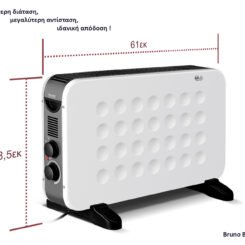 Ο θερμοπομπός BRUNO BRN-0206 ζεσταίνει γρήγορα και αποτελεσματικά χώρους και δωμάτια και είναι απαραίτητος σε ένα νοικοκυριό σαν βασική ή βοηθητική-εναλλακτική λύση για χώρους με ελλιπή θέρμανση.