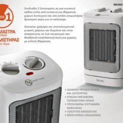 BRUNO κεραμικό αερόθερμο BRN-0255, 2000W, με θερμοστάτη/ανεμιστήρα/αυτόματη περιστροφή, λευκό