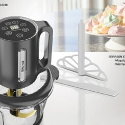 Επιπλέον εξαρτήματα: Πλαστικό μαχαίρι-σπάτουλα, εξάρτημα μαρέγκας