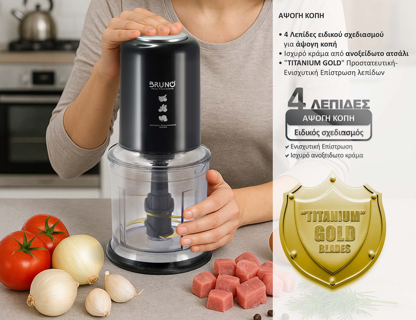 BRUNO πολυκόπτης BRN-0247, 500W, 700ml, 4 λεπίδες, μαύρο