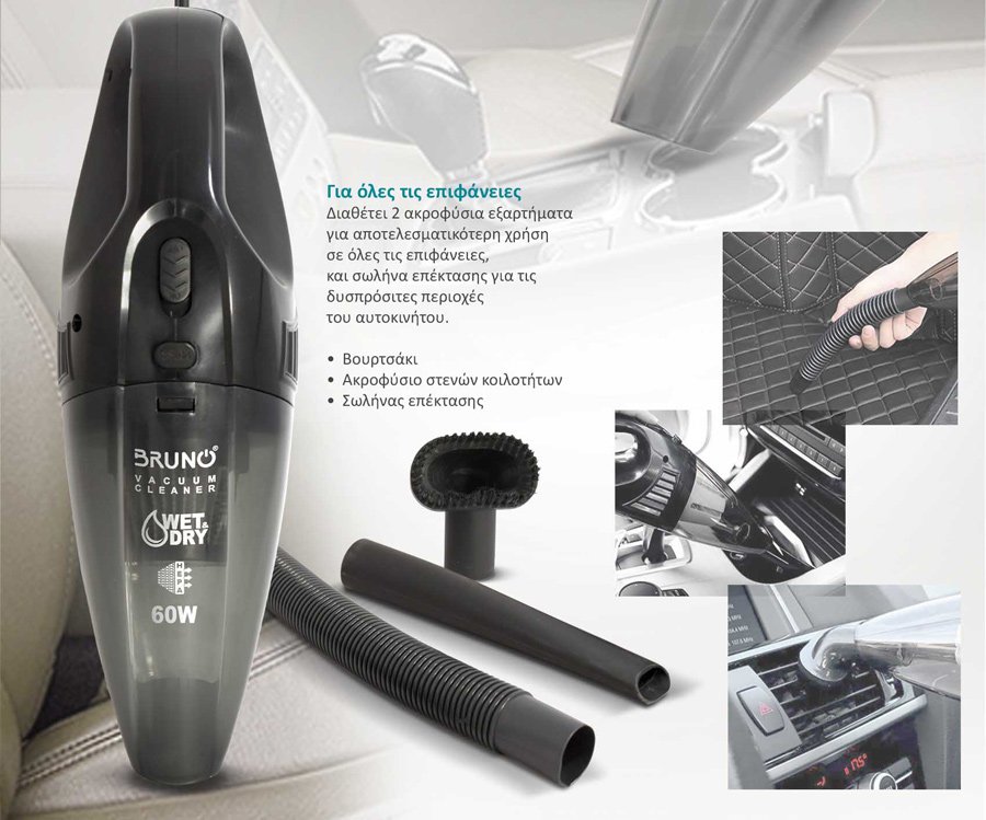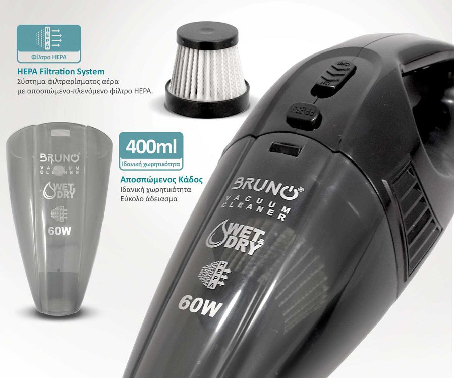 BRUNO σκουπάκι αυτοκινήτου υγρών & στερεών BRN-0126 12V 60W, φίλτρο HEPA