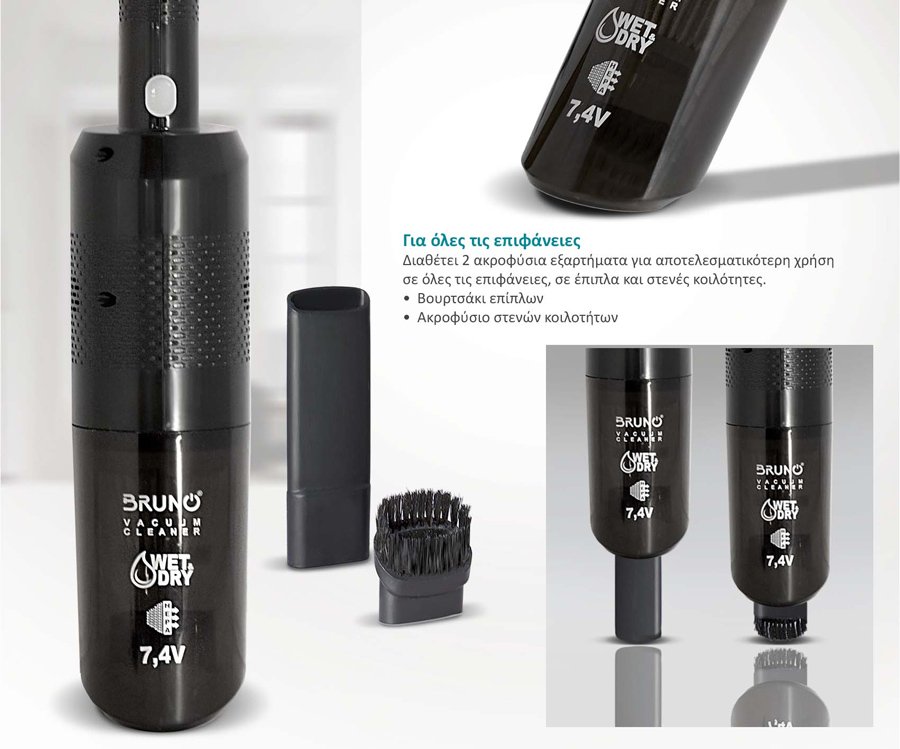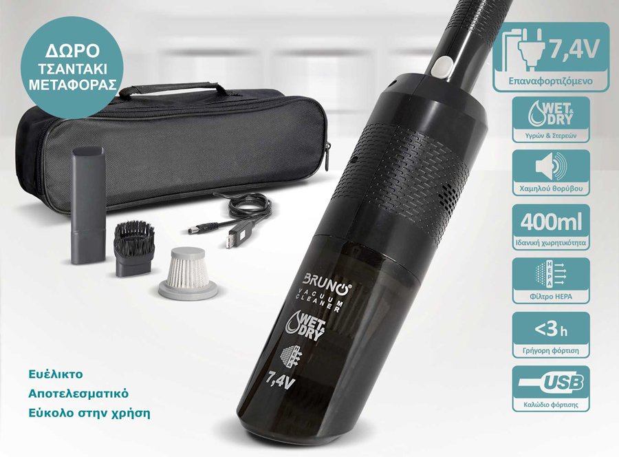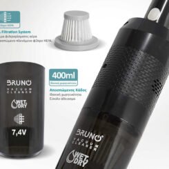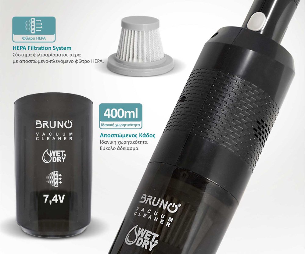 BRUNO σκουπάκι υγρών & στερεών BRN-0125, επαναφορτιζόμενο, φίλτρο HEPA