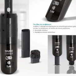 Το επαναφορτιζόμενο σκουπάκι BRN-0125 της BRUNO είναι ιδανικό για γρήγορο και εύκολο τοπικό καθάρισμα στερεών και υγρών υπολειμμάτων στο αυτοκίνητο, στο γραφείο, αλλά και στο σπίτι.