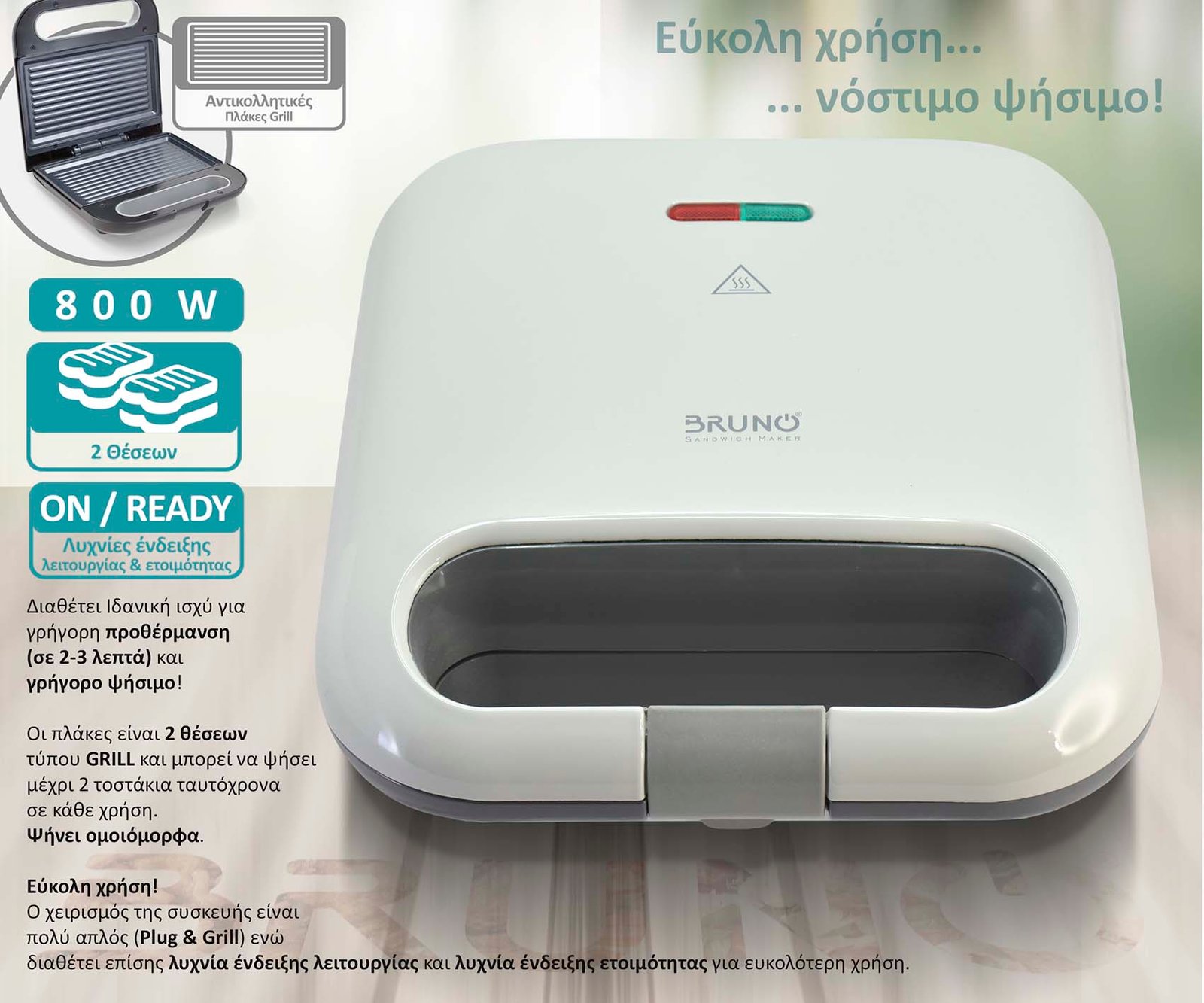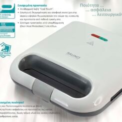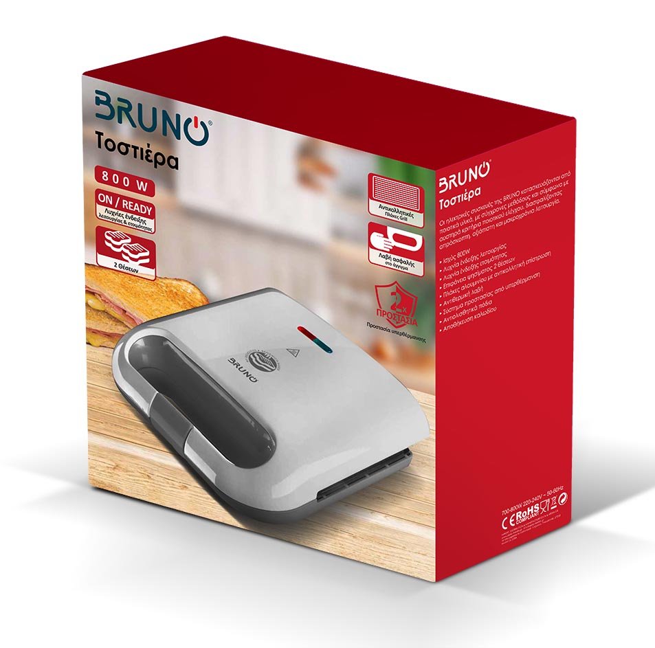 BRUNO τοστιέρα BRN-0164, 2 θέσεων, 800W, αντικολλητικές πλάκες, λευκή