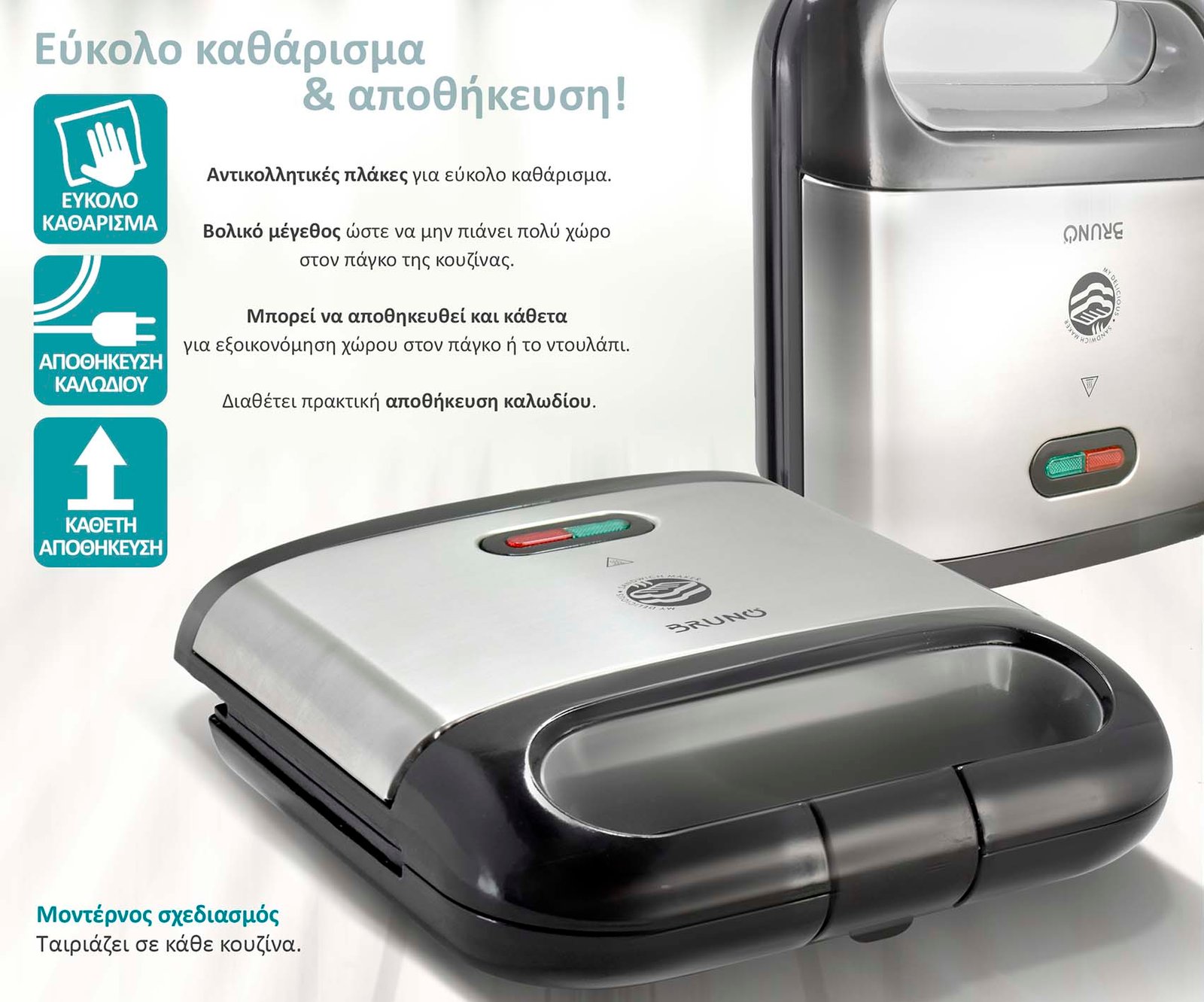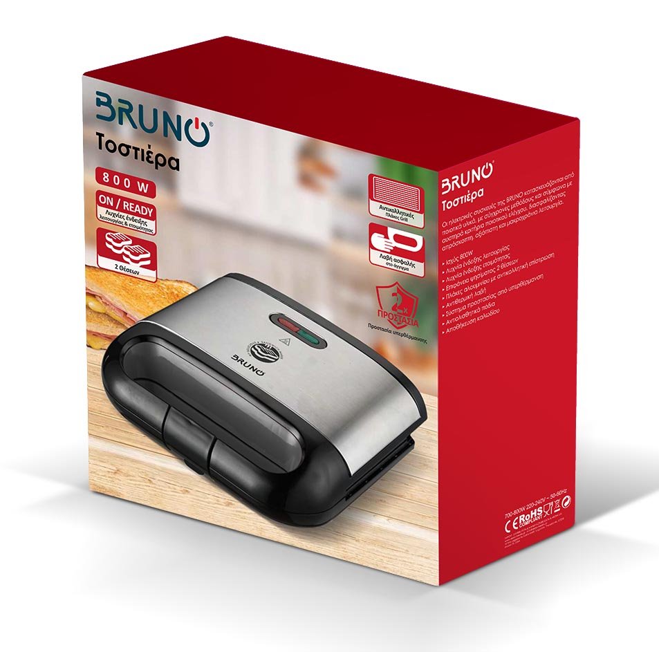 BRUNO τοστιέρα BRN-0165, 2 θέσεων, 800W, αντικολλητικές πλάκες, inox