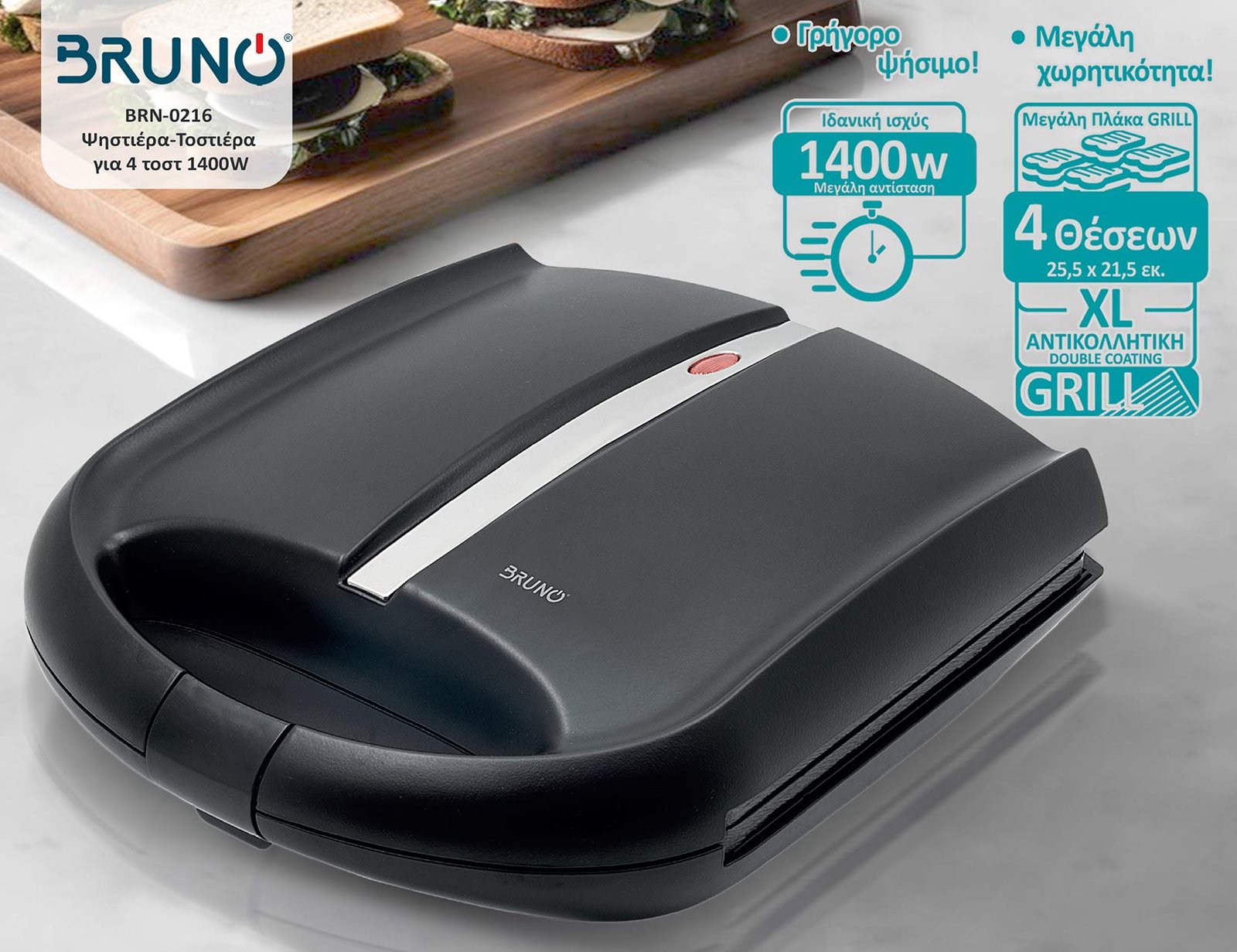 BRUNO ψηστιέρα-τοστιέρα BRN-0216 για 4 τοστ, 1400W, μαύρη mat/inox