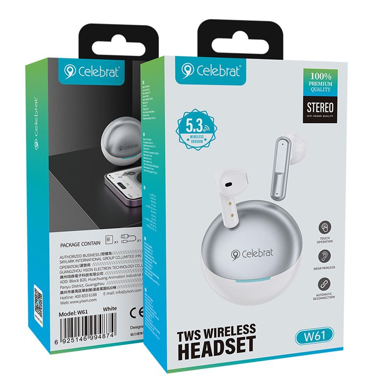 Τα true wireless earphones W61 της Celebrat προσφέρουν κορυφαία ποιότητα ήχου και άριστη εφαρμογή στο αυτί. Είναι συμβατά με tablets, smartphones και άλλες συσκευές που διαθέτουν Bluetooth.