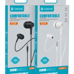 CELEBRAT earphones με μικρόφωνο G25, 3.5mm σύνδεση, Φ10mm, 1.2m, λευκά