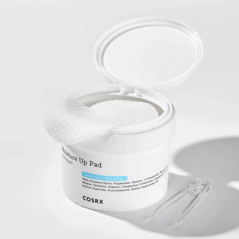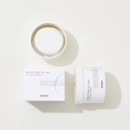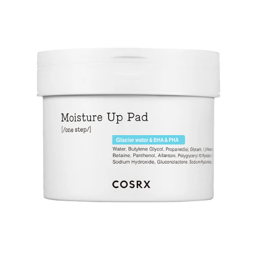 Τα One Step Moisture Up Pads της COSRX είναι έτοιμα προς χρήση τονωτικά pads εμποτισμένα με υαλουρονικό οξύ και BHA, που προσφέρουν ταυτόχρονα ήπια απολέπιση και βαθιά ενυδάτωση. Καθαρίζουν τους πόρους, απομακρύνουν τα νεκρά κύτταρα και προσφέρουν φρεσκάδα και απαλότητα, χωρίς να ξηραίνουν την επιδερμίδα.