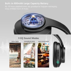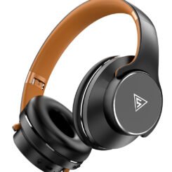 DOQAUS headphones DESIGN 1, ασύρματα & ενσύρματα, Φ40mm, 600mAh, μαύρα/καφέ