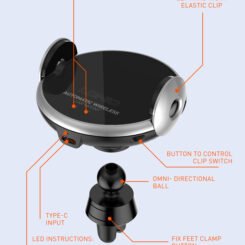 Συγκρατεί το smartphone σταθερό και ασφαλές με κλιπ συγκράτησης ενώ παράλληλα το φορτίζει ασύρματα με απόδοση έως 15W.