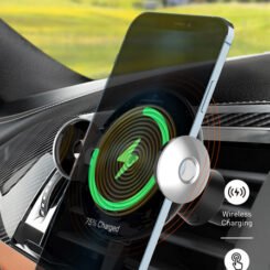 Ασύρματος φορτιστής και βάση αυτοκινήτου με στήριξη σε οριζόντιους ή κάθετους αεραγωγούς του αυτοκινήτου.