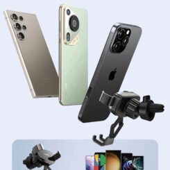 Βάση αυτοκινήτου για smartphone με στήριξη σε οριζόντιους ή κάθετους αεραγωγούς του αυτοκινήτου.