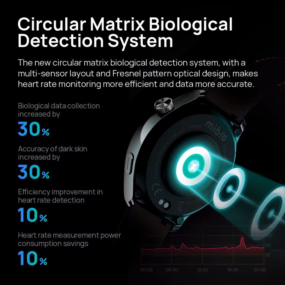 Κομψό smartwatch από την Mibro με ανθεκτική κατασκευή και εντυπωσιακή έγχρωμη οθόνη αφής 1.32" AMOLED που προσφέρει την δυνατότητα να έχετε την οθόνη του smartwatch πάντα ενεργοποιημένη.
