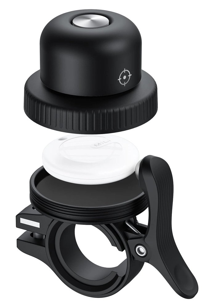 MILI κουδούνι ποδηλάτου με smart tag MiTag Duo, iOS & Android, Bluetooth tracker, μαύρο/λευκό