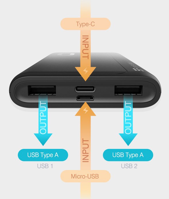 Input: Micro-USB: DC 5V/2A, Type-C: DC 5V/2A