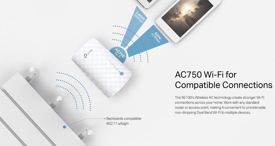 TP-LINK AC750 Wi-Fi Range Extender RE190, dual band, Ver. 4.0