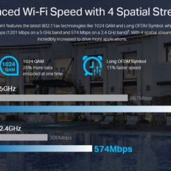 -WiFi 6 Ταχύτητες: Ταυτόχρονη 574 Mbps στα 2.4 GHz και 1201 Mbps στα 5 GHz συνολικά ταχύτητες Wi-Fi 1775 Mbps