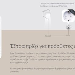 Starter powerline kit της TP-LINK με 2x AV1000 Gigabit passthrough powerline αντάπτορες TL-PA7017P και 2x καλώδια Ethernet.