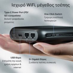 Τροφοδοτήστε το με ένα Power Bank: Με μια διεπαφή Type-C, μπορείτε να το μετατρέψετε ευέλικτα σε κινητό δρομολογητή με power bank.