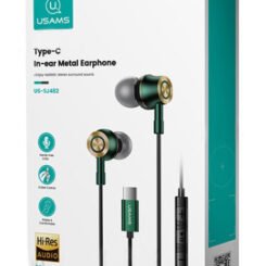 USAMS earphones με μικρόφωνο US-SJ482, USB-C, Φ10mm, 1.2m, πράσινα