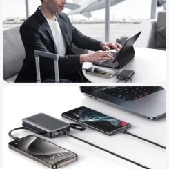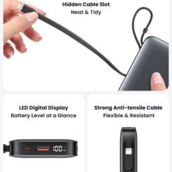 Η φόρτιση του power bank γίνεται μέσω της USB-C θύρας ή ενσωματωμένου καλωδίου και εξοπλίζεται με ψηφιακή οθόνη για την ένδειξη κατάστασης της μπαταρίας.