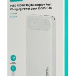USAMS power bank CD249 με οθόνη, 3x θύρες εξόδου, 10000mAh, PD20W, λευκό