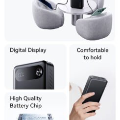 USAMS power bank CD251 με οθόνη, 3x θύρες εξόδου, 20000mAh, PD20W, μαύρο