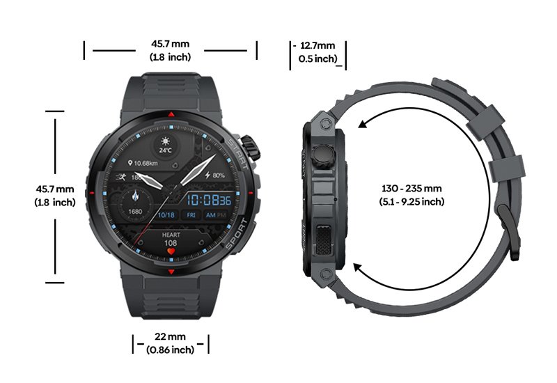 -Λουράκι: Υλικό: Σιλικόνη, Πλάτος: 22mm, συμβατό με standard 22mm quick-release λουράκια